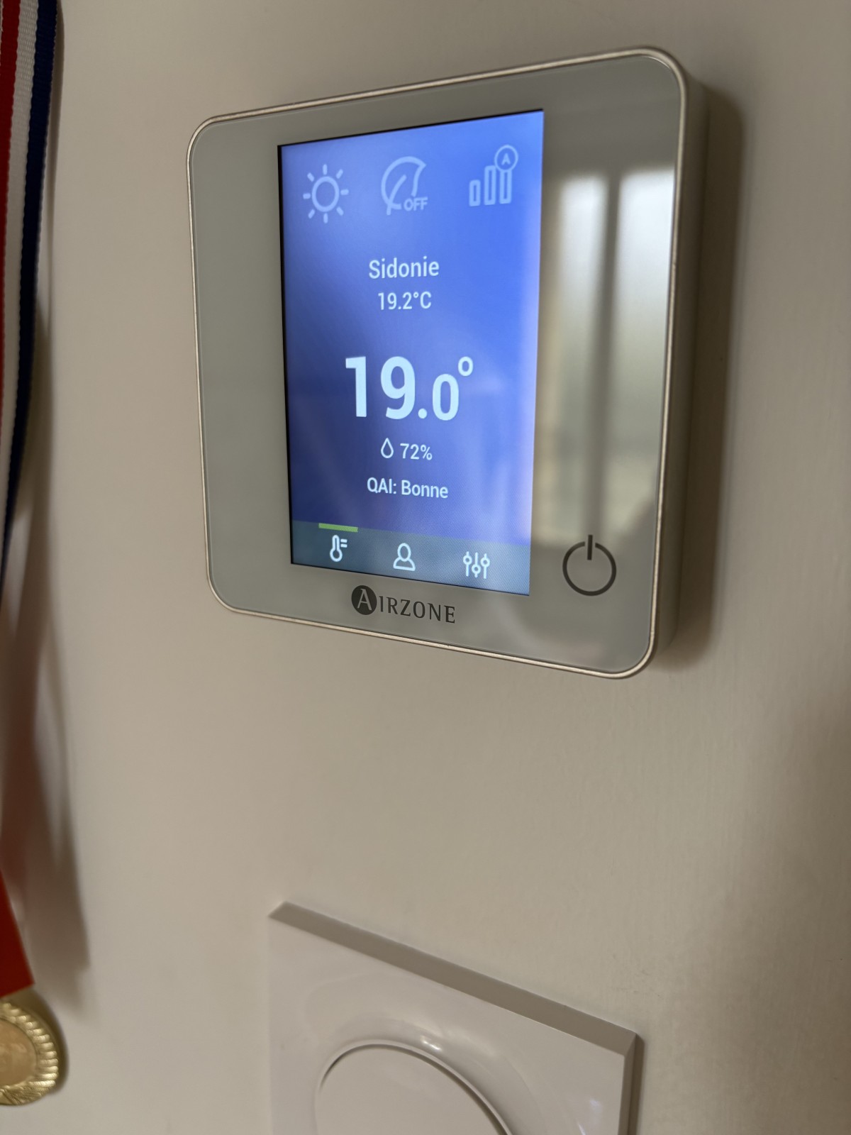 L’intégration du système Airzone permet une gestion intelligente et individualisée de la température pièce par pièce. Grâce à des thermostats connectés et une interface utilisateur intuitive, chaque occupant peut ajuster la température selon ses préférences, optimisant ainsi la consommation énergétique. Cette technologie permet d’éviter le gaspillage en ne chauffant ou refroidissant que les pièces utilisées.